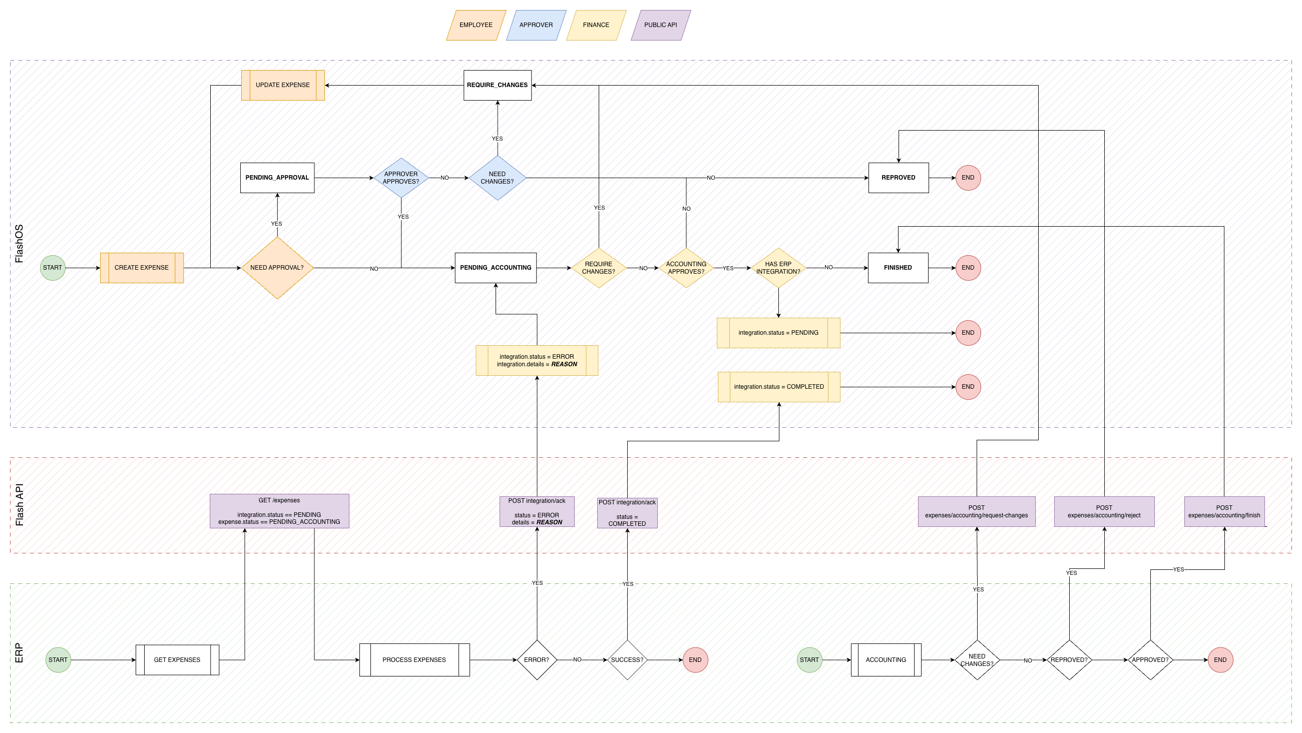 O ERP deve listar as despesas (veja Listar Despesas) filtrando por status PENDING_ACCOUNTING e status da integração PENDING e realizar o processamento dessas despesas.